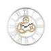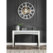This Alicia round wall clock offers beveled mirrored panels that highlight its glamorous style. Features quartz mechanism, open back frame made with durable engineered wood. The clock face comes with a timeless roman numeral design that will naturally attract the eye.