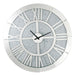 This Nowles round wall clock is covered in beveled mirrored panels that highlight its glamorous style. Featuring crushed acrylic faux diamonds that will naturally attract the eye. Durable engineered wood supports the frame. The clock face comes with a timeless roman numeral design.