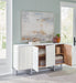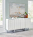 Keep things contemporary cool with the Ornawel accent cabinet. The step pattern on the door fronts lends an appealing geometric touch, with a lightly distressed white finish enriching the design. Touch latch doors open to reveal two shelves for all your storage needs. What a high-style statement.