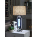 - Table Lamp LED Light Bulb / Glass Cylinder with Motion Glitter Light Bulb Required Type: E26, 9W x 1Pc Switch Type: 4-WAY Rotary Switch at bulb socket (1. Main light, 2. Nigh Light, 3. Main Light and Night Light, 4.Off) Drum Shade: Light Brown Fabric Base Material: Chrome Finish Metal with Single Acrylic Cylinder with G9 LED Bulbs, 1Pc Clear Glass Cylinder includes glitter suspended in liquid that swirls reflecting vibrant light.