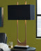 An open metal frame adds elegant style to the look of this table lamp. It features a black rectangle shade, a brass-tone and black metal finish, a white marble base and a 3-way switch. Built with sheer perfection, the lamp adds a dazzling glow to your spaces.