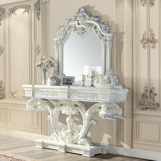 ACMERaised Scrolled-Oversized Molding Trim: Poly Resin Ornamental Detail with Antique Finish. Picardy - Mirror - Antique Pearl57.0"W x 2.0"D x 45.0"H -...