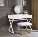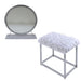 Adao - Vanity Mirror & Stool - Faux Fur, Mirror, White & Chrome