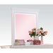 Create an illusion of light and space by bringing in this Lacey shaker-style dresser top mirror. It comes with a white rectangular wooden encasing and showcases molded details on the frame. The edges of the mirror are beveled and give it some depth. It is the perfect addition to your bedroom. This mirror is designed to be mounted to a compatible dresser (sold separately).