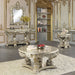 Traditional style that never goes out of fashion, the Sorina coffee table is a great addition to your living room. The silver and gold finishes complement each other flawlessly. This coffee table showcases elaborate carvings on the table base to recreate the regality of the bygone era in your living space.