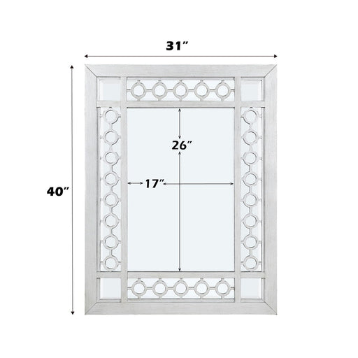 ACMEVarian - Mirror - Mirrored & Antique PlatinumProduct Features Mirror w/Beveled Edge () Wooden Frame, Raised Geometric Trim, Beveled-Mirror Inla...