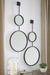 Contemporary style is stacking up beautifully in this metal framed accent mirror with stacked circle design. Whether gracing an entryway or brightening up a hallway or vanity area, what a simply striking way to round out a room.