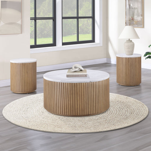 Steve Silver FurnitureThe Darcie 3-Piece Faux-Wood Table Set, featuring a coffee table and two end tables, brings a mix of modern and architectural flair to any living r...