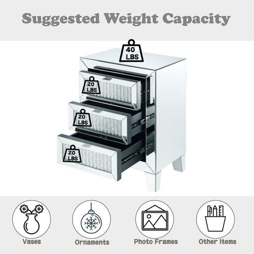 ACMENoralie - 26" Accent Table - Mirrored & Faux DiamondsProduct Features Assembled, Rectangular Night Table Storage: 3 Drawer Features: Mirrored F...