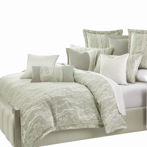 Michael AminiThe Marvel duvet set is teeming with texture with its understated mist hue that blends easily with a variety of color palettes. Matching euro shams...