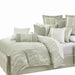 The Marvel duvet set is teeming with texture with its understated mist hue that blends easily with a variety of color palettes. Matching euro shams reverse to solid mist velvet to add versitality, and coordinating accent pillows add a dash of distinction and the perfect 'wow' factor. Oversized for today's larger mattresses.