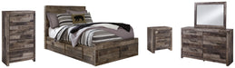 Derekson Full Panel Bed with 6 Storage Drawers with Mirrored Dresser, Chest and Nightstand