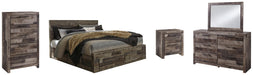 Derekson King Panel Bed with 6 Storage Drawers with Mirrored Dresser, Chest and Nightstand
