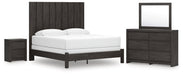 Fraluna King Panel Bed with Mirrored Dresser and Nightstand