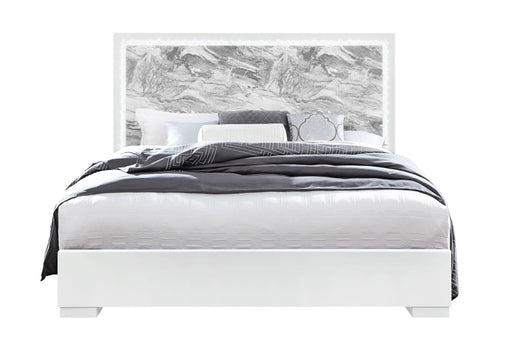 Global Furniture USAMake a bold statement with the Naomi King Bed. The light grey lacquer finish brings a modern, airy feel to your space, while the faux marble grey h...