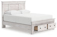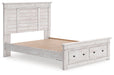 | Details | Includes panel headboard, storage footboard, platform rails and roll slats , Made with engineered wood (MDF/particleboard/plywood) and decorative laminate for the right balance of affordability and durability, Whitewash replicated worn through paint over replicated wood grain with authentic touch, Decorative laminate replicates natural or man-made material surfaces with consistent color, pattern and texture, Handles with dark bronze-tone finish, 2 smooth-gliding storage drawers, Bed does not require additional foundation/box spring; accommodates most zero clearance adjustable bases with the addition of a bunkie board , Mattress available, sold separately, Assembly required | |