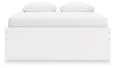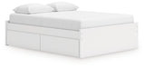 Details Includes platform bed panels, platform rails, roll slats and 2 side storage drawers, Made with engineered wood (MDF/particleboard/plywood) and decorative laminate for the right balance of affordability and durability, Solid white finish, Decorative laminate replicates natural or man-made material surfaces with consistent color, pattern and texture, 2 smooth-gliding storage drawers with ball-bearing side glides; vinyl-wrapped sides and back for durability, Bed does not require additional foundation/box spring; accommodates most zero clearance adjustable bases with the addition of a bunkie board, Mattress available, sold separately, Assembly required