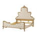 Sure to make a dynamic statement in any bedroom, this deluxe bed features traditional design elements created for royalty. The extravagant headboard features a pave crystal tufted headboard and footboard and a frame finished in Medium Champagne. Antique platinum leaf finished designs adorn the bedframe and further the feeling of true luxury.