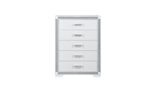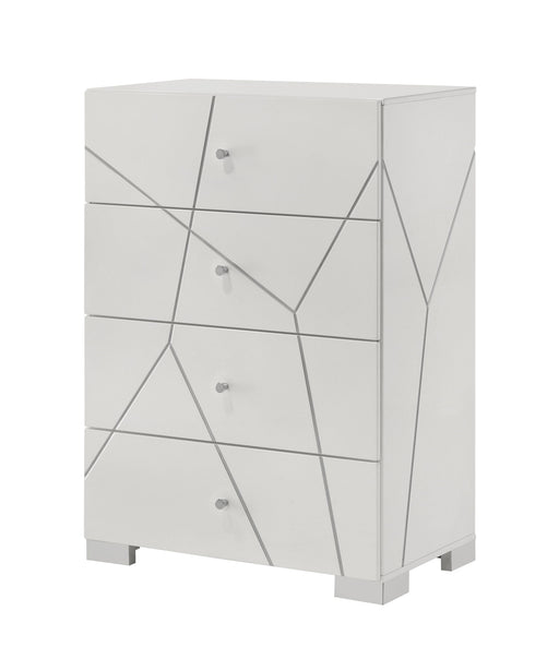 ACMEEsther - Chest - White / SilverProduct Features Box Spring Required Drawer: Side Metal GLIDE Drawer, Drawer Extension 3/4, Safety Stop Included Met...