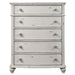 This Jaqueline chest will help with keeping a tidy bedroom with its five spacious drawers. English dovetail drawer fronts and backs provide strong construction for everyday use. The gorgeous traditional design of this chest showcases a sturdy wooden construction in a traditional antique white finish and sits on stylish wooden bun legs for extra pizzazz.