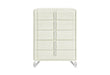 The Lyra Chest offers generous storage while elevating your bedroom decor. Finished in light beige wood with striking acrylic legs, it features multiple full-extension, felt-lined drawers accented by oval metal handles. Stylish and functional, the Lyra Chest ensures your wardrobe stays organized in timeless elegance.