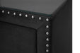 Immerse yourself in the regal charm of this majestic bedroom collection, a true embodiment of luxurious comfort and refined elegance. At the heart lies a bed that commands attention with its impressive wingback headboard, richly upholstered in a rich velvet and adorned with diamond tufting and shining nailhead trim, offering a sophisticated centerpiece. Accompanying the bed are matching pieces, each boasting the same sumptuous fabric and exquisite detailing. The nightstand and chest of drawers stand as stately companions, offering practical storage solutions without compromising on style, their sleek handles gleaming against the dark, plush fabric. The dresser, accompanied by a statement mirror framed with a hint of sparkle, completes the set, creating a harmonious balance between functional design and opulent aesthetics.