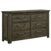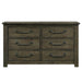 The Maverick 6-Drawer Dresser delivers rustic and cozy style to your sleeping space. Features distressing and wood grain detailing throughout for that warm feel. Constructed of sturdy solid and manufactured woods for years of use. Perfect neutral finish for adding to your existing bedroom aesthetic. Complete the look by adding the Maverick Panel Bed to your bedroom.