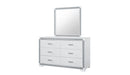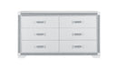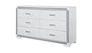 The Soleil Dresser offers both beauty and function. Its sharp white finish is wrapped with crushed crystal trim that catches the light beautifully, while its spacious drawers provide ample storage. Crystal-accented handles complete the look, making this piece as practical as it is dazzling.
