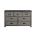 The Wade 7-Drawer Dresser is the ultimate dresser for your home! This bedroom staple comes with seven, spacious drawers; perfect for easily keeping all of your belongings neatly stored away. The bottom drawer features a dust proofing layer to help protect your belongings. The drawer pulls and trim along the top of the chest are both metal with a black finish. Along the trim on the dresser are decorative bolts, adding a little extra flair. This dresser is finished in a neutral gray, making it easy to pair with any existing decor or to find an excuse to completely redo your bedroom. Please note wood grains vary piece by piece and will not look exactly like the picture.