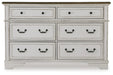 Traditional design. Casual appeal. You can have it all with this dresser. A relaxed two-tone aesthetic merges with ornate profiled drawer fronts and pilasters to give the distinctive piece an allure all its own. Expansive drawers with quality dovetail construction and dark bronze-tone hardware reflect attention to detail from the inside out.