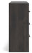 | Details | Made with engineered wood (MDF/particleboard/plywood) and decorative laminate for the right balance of affordability and durability, Charcoal finish over replicated oak grain with authentic touch, Decorative laminate replicates natural or man-made material surfaces with consistent color, pattern and texture, Large-scale dark colored handles, 6 smooth-gliding drawers, Drawer interiors are lined with a faux linen laminate for a clean, finished look, Safety is a top priority, clothing storage units are designed to meet the most current standard for stability, ASTM F 2057 (ASTM International), Drawers extend out to accommodate maximum access to drawer interior while maintaining safety, Minor assembly required | |