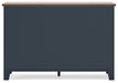 Details Made with hardwood solids, mindi wood veneer and MDF substrates, Two-tone finish features a dark slate blue with a light brown wood-tone top, Nickel-tone metal knobs, 6 drawers with fully finished interior, dovetail construction and heavy duty ball-bearing side glides