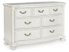 | Details | Made with hardwood solids, veneer and MDF substrate with cast resin components, Antiqued white finish, Metal pulls with polished pewter-tone finish, 7 smooth-gliding drawers with fully finished interiors, Drawer with French/English dovetail construction and heavy-duty ball-bearing side glides (top drawers felt lined), Thick decorative moulding, Reeded bun feet | |