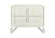 The Lyra Nightstand is a perfect balance of function and refinement. Resting on acrylic legs and finished in light beige wood, it features full-extension, felt-lined drawers accented with oval metal handles. A built-in USB port adds modern convenience, making it as practical as it is beautiful.