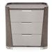 - Faux shagreen drawer fronts in a Frost Gray finish