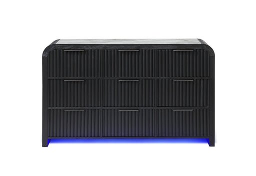 Global Furniture USAThe Beckett Dresser features a black finish, white faux marble top, and drawer fronts with elegant, fluted detailing for a sophisticated, textural ...