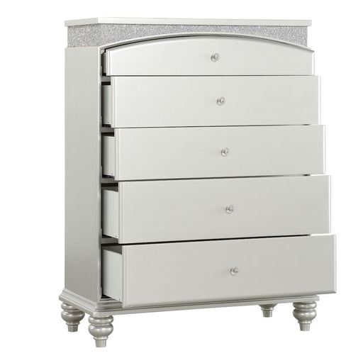 ACMEMaverick - Chest - PlatinumProduct Features 5 Drawer Drawer: Arched Top Drawer, GLIDE Bottom Metal (Undermount, Full Ext. ), DOVETAIL English Front...