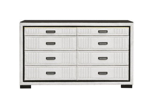 Global Furniture USAWrapped in white upholstery with fluted drawer fronts for a soft yet structured look, the Isabella Dresser features LED lighting to create a serene...