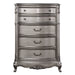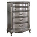 Create the feel of a European chateau in your bedroom with the Ausonia collection. Gathering inspiration from vintage Rococo design, featuring intricate carvings that embody the period. The wingback headboard is a classic design is accented with crystal-like button tufting that adds texture and a touch of glimmer for a regal look. The antique platinum'finish has a brilliance to it that draws attention to the eyes