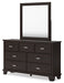 | Details | B441B9: Includes panel headboard, footboard, rails and slats, Made with hardwood solids, engineered wood veneer and MDF substrates, Dark brown finish, Floating panel headboard, Picture frame footboard, Foundation/box spring required, sold separately , Mattress available, sold separately, Assembly required, B441B1: Includes dresser and mirror, Made with hardwood solids, engineered wood veneer and MDF substrates, Dark brown finish, Metal bar pulls with bright nickel-tone finish, 7 smooth-gliding drawers with dovetail construction and metal center guides, Drawer interiors are lined with a wood grain laminate for a clean, finished look, Top moulding on dresser, Mirror attaches to back of dresser, | |