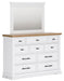 | Details | B844B5: Includes panel headboard, storage footboard, rails and roll slats, Footboard made with hardwood solids, MDF substrates and butcher block oak veneer, Headboard and rails made with hardwood solids and MDF substrates, White finish, Headboard with inset black metal barn sash, 2 drawers in footboard with fully finished interior, dovetail construction and ball-bearing side glides, Pulls with matte black finish, Bed does not require a foundation/box spring, Mattress available, sold separately, Assembly required, B844B1: Includes dresser and mirror, Made with hardwood solids, MDF substrates and butcher block oak veneer, Dresser with 2-tone finish (white finish; butcher block oak veneer with natural finish), Pulls with matte black finish, 10 spacious drawers with fully finished interiors (top drawers felt lined), dovetail construction and ball-bearing side glides , Drawers with inset picture fronts, Mirror attaches to back of dresser, B844-93: Made with hardwood solids, MDF substrates and butcher block oak veneer, 2-tone finish (white finish; butcher block oak veneer with natural finish), Pulls with matte black finish, 3 spacious drawers with fully finished interiors (top drawers felt lined), dovetail construction and ball-bearing side glides, 110V power supply with dual USB charging ports, Power cord included; UL Listed, Drawers with inset picture frame fronts, | |