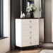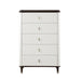 The Carena chest is the perfect blend of timeless design and modern functionality. This chest is crafted with care to enhance your bedroom's style and comfort. The white and brown finish exudes an understated elegance, creating an inviting atmosphere. The slatted drawer fronts of this piece provide visual appeal, while the five drawers add function to your bedroom. The tapered legs with metal tips add a touch of sophistication and durability. Perfect for anyone who values style and functionality.