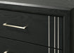 This elegant bedroom collection presents a sophisticated ensemble perfect for creating a refined modern aesthetic in your sleeping quarters. The suite features a sleek, minimalist design with crisp, clean lines and a richfinish that exudes contemporary charm. Anchoring the set is a robust panel bed with a prominent headboard, promising a sturdy and stylish centerpiece. Flanking the bed are complementary case pieces, offering ample storage with their smooth-gliding drawers accented with chic silver-toned hardware.