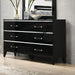 Explore modern simplicity that easily improve your overall aesthetic. The contemporary lines of this dresser works perfectly with the temping finish, while decorative sliver trims add depth and reflect light. It offers six storage drawers with clear acrylic bar handles that bring a voguish, high-end feel to the piece. Simple design with clean lines let this chest can work well in rooms of all styles.