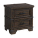 Elevate your bedroom with the rugged charm of the Colorado City Nightstand, where classic charm meets modern convenience. The charcoal finish highlights the wood grain, giving it a unique, warm character. Metal accents and rivet detailing add an industrial edge, while two spacious drawers provide ample storage for your evening essentials. With a built-in USB port, this nightstand blends style with practicality, making it easy to keep your electronics close by and fully charged. The Colorado City Nightstand is more than just a bedside companion — it's a statement of style and functionality, bringing both elegance and ease to your space.