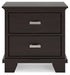Feast your eyes on this richly versatile nightstand. Its traditional-inspired dark brown finish effortlessly blends with contemporary bright nickel-tone pulls to create a stunning look that's not too stuffy or too trendy. Spacious drawers offer plenty of room to tuck away your bedside must-haves.