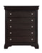 The Dominique bedroom embodies all the elegance of French design without any distracting embellishments. Clean, classic lines of Louis Philippe styling accentuate the warm merlot-stained finish of the collection. The Dominique Chest brilliantly takes advantage of the vertical space in a bedroom. Design details like hidden drawers in the molding ensure stylish and functional storage for the most cherished pieces in your bedroom.