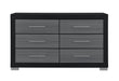 The Emma Dresser adds a touch of sophistication to your bedroom with its sleek two-tone black and grey finish. This dresser features multiple spacious drawers, ideal for storing clothing, accessories, and more. With its clean lines and modern design, it offers both style and functionality, perfectly pairing with other pieces of both the Emma or Madison collections.