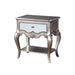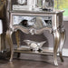 Mirrored Fronts, Glide) Side Metal (Full Ext.), Dovetail) English Front & Back, Felt Lined) Top Drawer, Safety Stop Included, Manual-Close, Hardware: Single Crystal-like Pull-Knob CONSTRUCTION] Wooden Case-Leg: (Poplar), MDF, PB, MOLDING TRIM: Poly-Resin (Raised Trim & Scrolled Base) Wooden Cabriole Leg