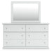 | Details | B139B42: Includes panel headboard/footboard and rails, Made with engineered wood (MDF/particleboard/plywood) and decorative laminate for the right balance of affordability and durability, Replicated solid white paint, Decorative laminate replicates natural or man-made material surfaces with consistent color, pattern and texture, Foundation/box spring required, sold separately, Mattress available, sold separately, Assembly required, B139B40: Includes dresser and mirror, Made of engineered wood (MDF/particleboard), Knobs with pewter-tone finish, Scalloped moulding, 6 smooth-operating drawers, Includes tipover restraint device, Mirror attaches to back of dresser; can also be mounted on wall horizontally or vertically, Safety is a top priority, clothing storage units are designed to meet the most current standard for stability, ASTM F 2057 (ASTM International), Drawers extend out to accommodate maximum access to drawer interior while maintaining safety, B139-91: Made of engineered wood (MDF/particleboard), Pewter-tone knobs, 1 smooth-operating drawer, 1 storage cubby, Scalloped moulding, Small Space Solution, | |